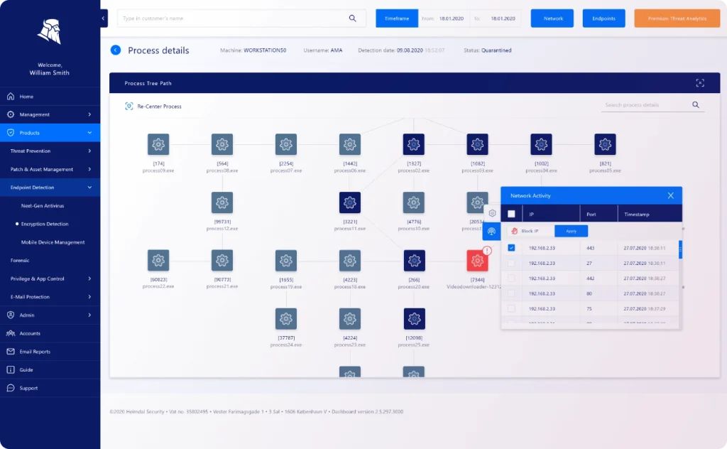Simplificar la elaboración de informes. Para acceder a todos los hechos de un incidente de cifrado malicioso, utilice el panel de control de Heimdal®.